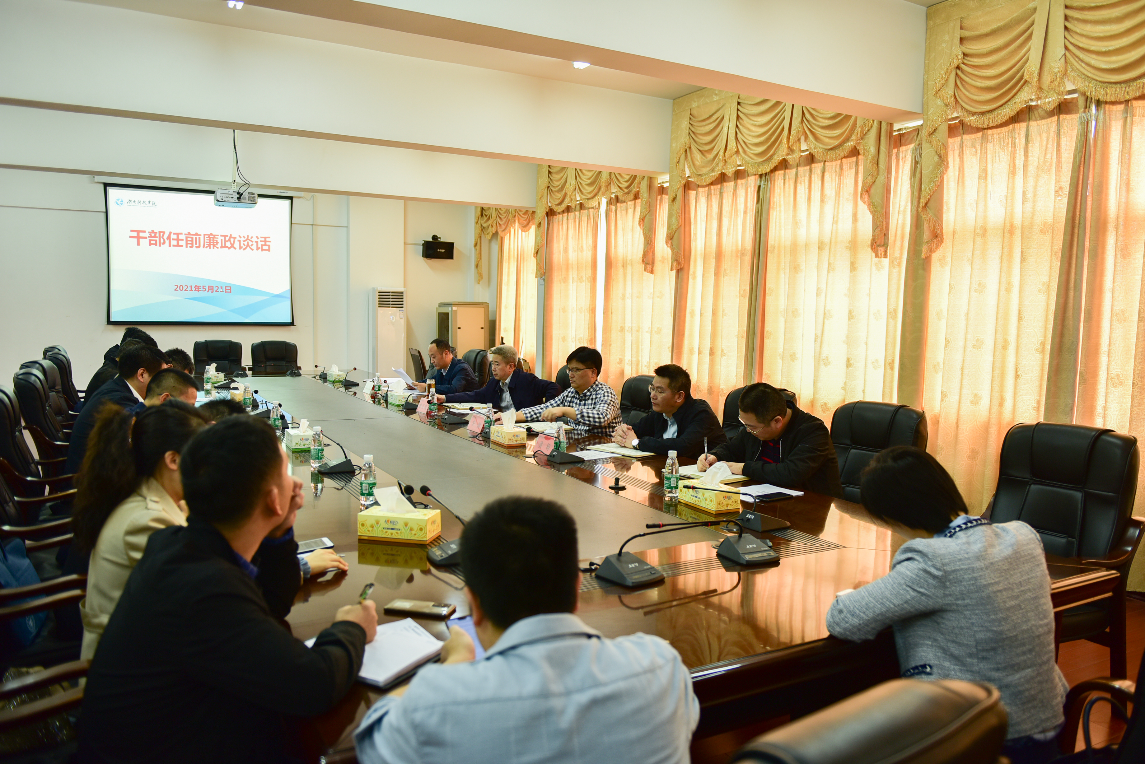 5月21日上午,学校开展新任处级干部任前廉政谈话。纪委副书记、纪检监察处处长黄栋同志代表校纪委对何丽萍、全伟等12名新提任或进一步使用的处级干部进行了任前廉政谈话。他围绕讲政治、敢担当、作表率、守纪律等方面,提出了四个方面的具体要求:一是要进一步提高觉悟,增强敏锐性,夯实政治责任;二是要进一步优化作风,增强执行力,提高管理质效;三是要进一步勇于担当,增强主动性,发挥先锋作用;四是要进一步遵规守纪,增强底线思维,恪守廉洁自律。新任处级干部逐一表态发言,纷纷表示在今后一定谨记本次廉政谈话的精神和要求,加强学习、真抓实干、严格要求,在新的岗位上做出新的贡献,展现新的作为。