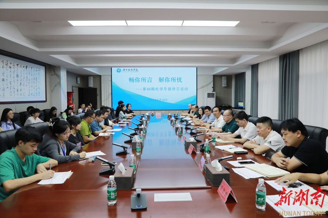 湖南日报·新湖南客户端6月20日讯(通讯员 赵丹)“学校能否开展更多的跨学科活动,进一步优化选课方案和评价体系?”“建议学校进一步加强基础设施建设,改进陈旧教学设备”6月18日晚,天游ty8检测中心官方登录举行第40期校领导接待日活动,校长黄创霞,党委委员、副校长何海与来自全校各个学院的教师、学生代表亲切交流,围绕师生关注的校园环境、教育教学、后勤服务、校园安全等问题展开讨论,共话发展。活动由学校党政办公室主任吴春江主持。