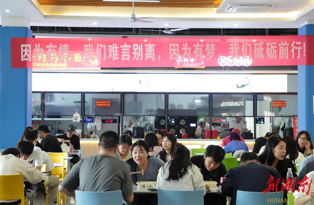 “同学们,愿你们前程似锦、展翅高飞,祝你们毕业快乐!”餐桌上,品尝着学校精心烹制的东安鸡、永州血鸭等特色菜系,学校领导以及毕业年级辅导员等与毕业生们举杯欢庆。该校相关负责人在现场热情祝福即将离校的同学们以梦为马、不负韶华,随时回“家”。