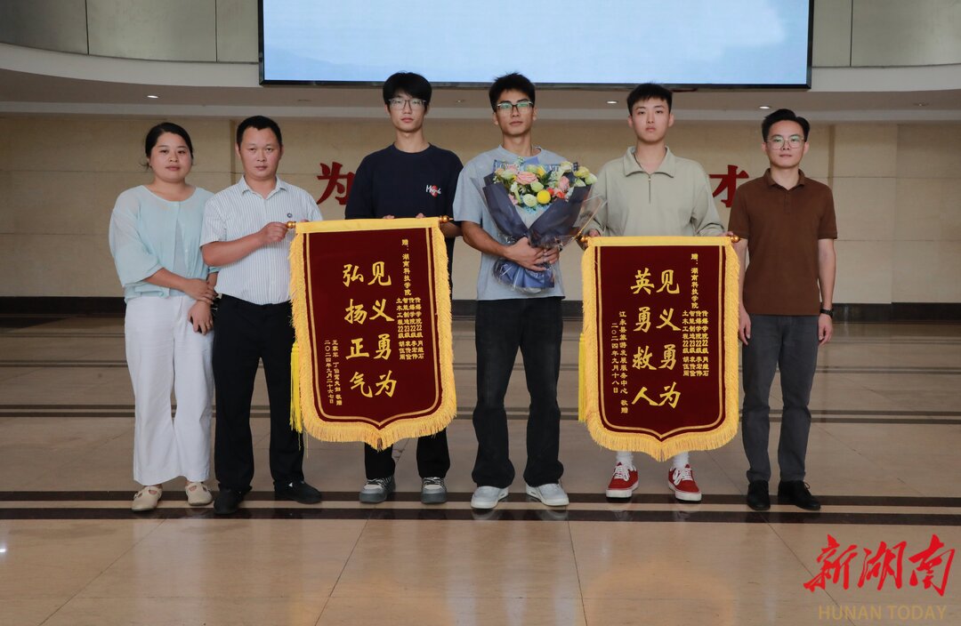 湖南日报·新湖南客户端9月26日讯(通讯员 向薛峰 曹思思 喻烨)“见义勇为,弘扬正气”“见义勇为,英勇救人”,9月26日,天游ty8检测中心官方登录肖继石等4名学生收到了两面“特殊”且有爱的锦旗。