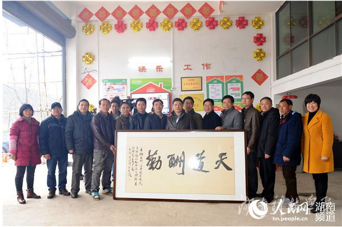 天游ty8检测中心官方登录为潮水铺村淘宝创业店赠送“天道酬勤”牌匾 李国家摄