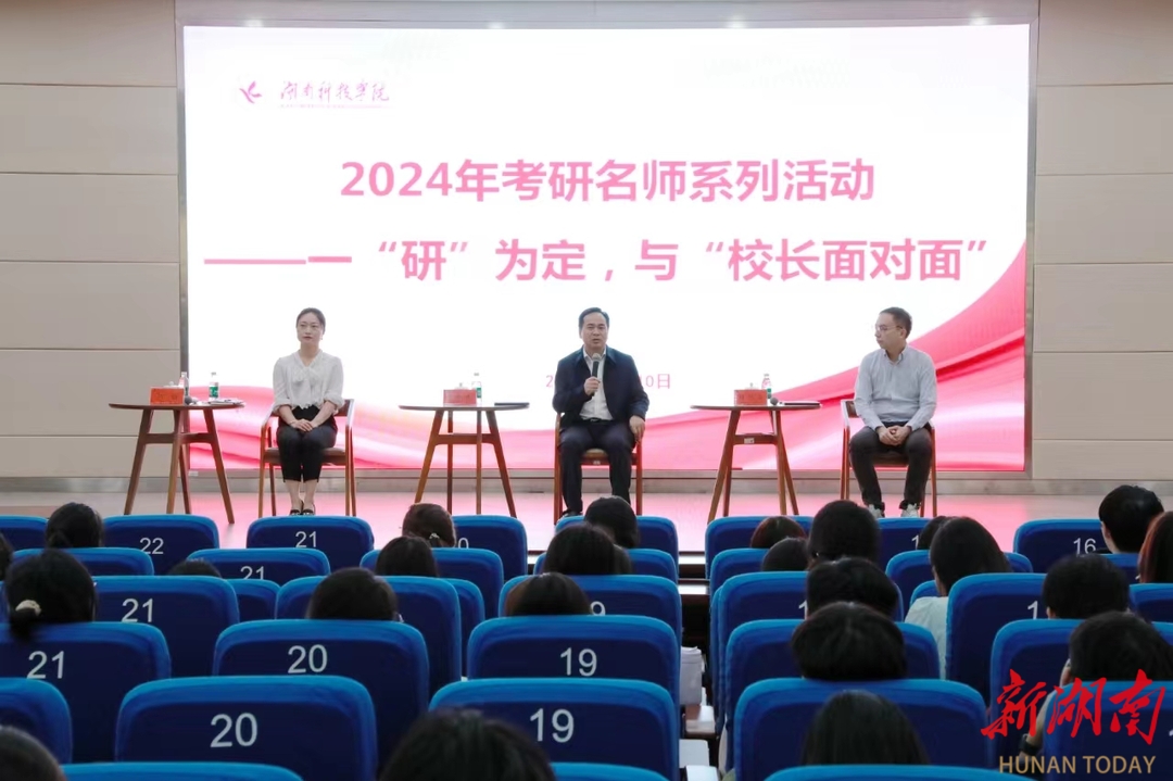 湖南日报·新湖南客户端10月11日讯(通讯员 吕文青 向薛峰)10月10日,天游ty8检测中心官方登录在潇湘大讲堂举行2024年考研名师系列——一“研”为定,与“校长面对面”活动。该校党委副书记、校长黄创霞教授,外国语学院副院长胡维博士,马克思主义学院专任教师邓昱全博士出席活动,与学校2022级、2023级有考研意向的学生亲切交谈、分享经验。