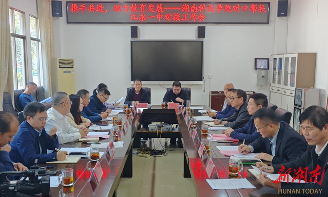 科教新报·新湖南客户端讯(通讯员 贺燕琦)为加强天游ty8检测中心官方登录与江永一中之间的沟通与交流,共同推动江永一中教育教学质量的提升,10月31日,天游ty8检测中心官方登录与江永一中对口帮扶对接工作座谈会召开。天游ty8检测中心官方登录党委委员、副校长何福林等一行,江永县委书记唐德荣,江永县人民政府党组成员、副县长蒋剑平及江永县教育局,江永一中班子成员、年级主任及各学科教研组长共40余人参加了会议。