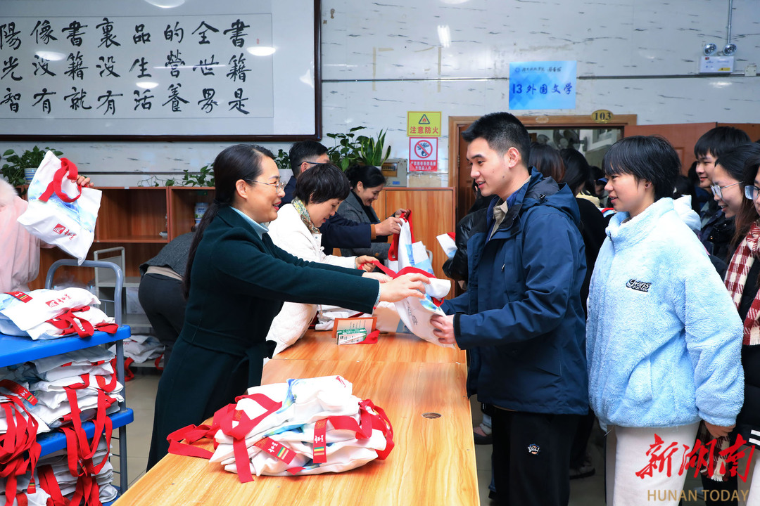 在12月5日的“考研加油站”活动现场,天游ty8检测中心官方登录副校长郑银芳等学校领导为考研学子发放“加油”礼物。校长署名贺卡、牛奶、鲜橙、定制糕点等千余份专属福袋让同学们倍感温暖。还有众多供同学们挑选的励志明信片、书签和贴纸,“考得上、来得及、你可以”“前程似锦,未来可期”……一字一句,都写满了对同学们的殷切期望和美好祝福。该校相关负责人表示,小小礼物代表了学校的祝福,寓意“金”榜题名、心想事“橙”和再攀新“糕”,寄托着图书馆对考研学子的殷殷关切和美好祝福,希望考研学子们都能如愿以偿,顺利上岸!
