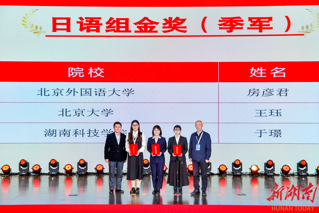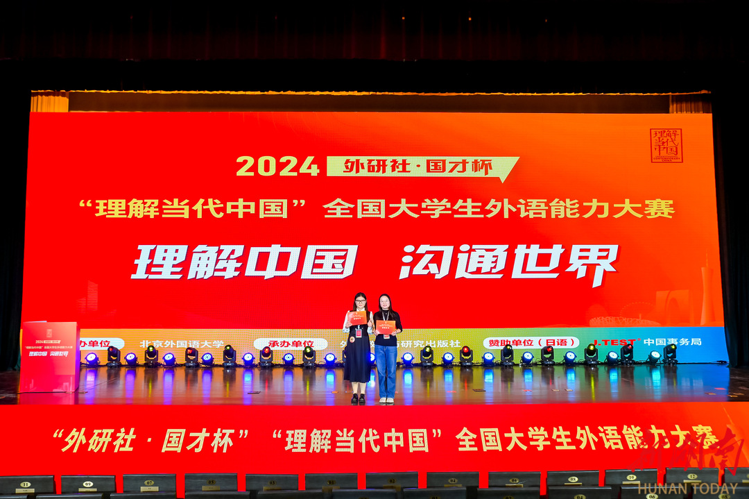 湖南日报·新湖南客户端12月9日讯(通讯员 宋琳 张云芳)12月7日,2024外研社·国才杯“理解当代中国”全国大学生外语能力大赛全国总决赛落幕,天游ty8检测中心官方登录外国语学院日语专业学生于璟以第6名的成绩,与北京外国语大学、北京大学等高校学子同台荣获日语组赛道的10项金奖。这是该校连续两年在全国大学生外语能力大赛中荣获金奖,2023年英语专业学子游顺钦曾获英语组笔译赛项金奖。