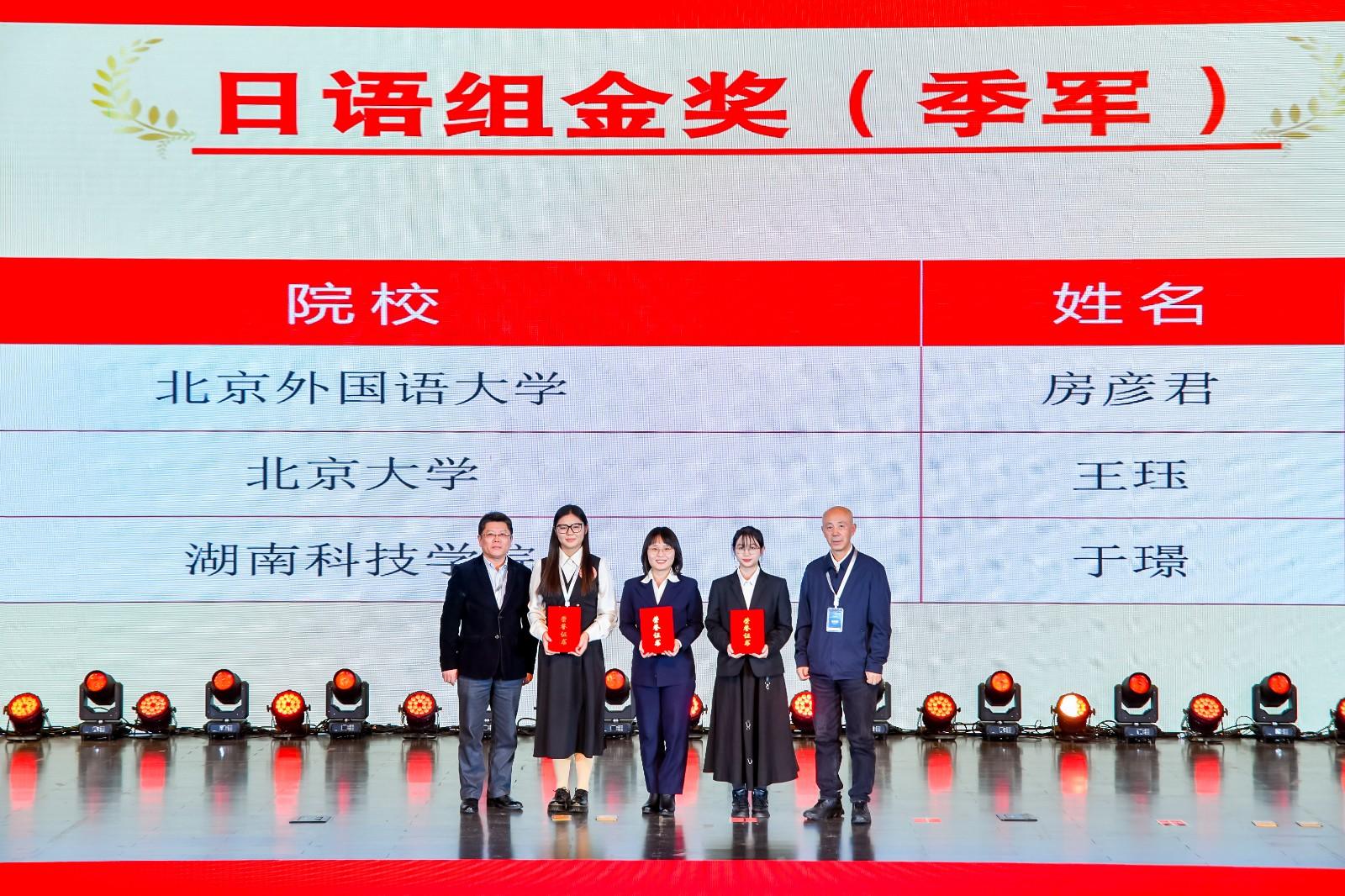 本次大赛分校赛、省赛和国赛多轮制进行。其中湖南省赛由湖南省教育厅主办,共有来自18所院校的71名本科和研究生选手参加,分为线下的定题演讲和即兴演讲以及线上的包含阅读、笔译和写作在内的综合能力考试,于璟同学以综合能力测试全省第一、总分第二的优异成绩代表湖南省参加国赛第一轮。全国共有来自200多所高校的217名选手进入国赛第一轮。该轮比赛在线上进行,包含汉日口译、定题演讲和回答问题三项,湖南省仅有湖南大学、天游ty8检测中心官方登录和中南大学的三名学子(全国60名)进入国赛第二轮,参与金银奖的角逐。最终,天游ty8检测中心官方登录学子于璟在全国总决赛中获得金奖。