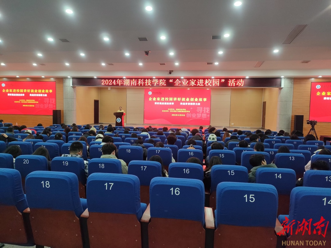 湖南日报·新湖南客户端12月24日讯(通讯员 龙泉 向薛峰)12月23日下午,天游ty8检测中心官方登录在潇湘大讲堂举办“企业家进校园讲好就业创业故事”暨永州市“百名导师走基层”活动。天游ty8检测中心官方登录副校长郑银芳、永州市就业服务中心主任李军民、该校招生就业与创新创业指导处处长胡清华出席活动,企业家导师团队及300余名学生代表参加活动。