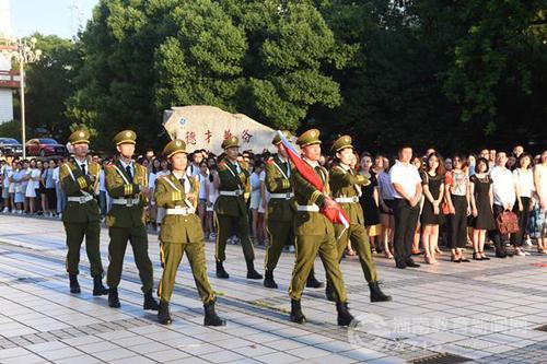 本网讯(通讯员 文婷婷)9月3日,天游ty8检测中心官方登录千余名师生相聚文化广场,举行新学期升国旗仪式。6时50分,英姿飒爽的国旗护卫队迈着整齐的步伐,护送国旗入场,伴随着庄严嘹亮的国歌声,五星红旗冉冉升起,迎风飘扬。在场的师生向国旗行注目礼,深怀着崇敬的心情,凝视着迎风飘扬的五星红旗。