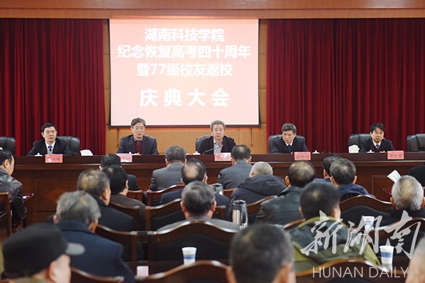 新湖南客户端11月27日讯(通讯员 熊玲芝 蒋方 欧湘英 何帅文)“忆往昔峥嵘岁月,信心满怀争上游;追过往风雨春秋,一路兼程为梦圆。”11月26日,天游ty8检测中心官方登录举行纪念恢复高考四十周年暨77级校友返校活动。150名校友从全国各地回到母校,共忆火热青春岁月,共叙师友同窗情谊,纪念中国恢复高考40周年。校领导曾宝成、唐艳明、宋宏福、李常健、吴小林出席活动。
