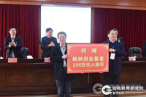 本网讯(通讯员 熊玲芝 摄影 何帅文)11月26日,北京枫林公益基金会会长、天游ty8检测中心官方登录北京校友会会长、77级化学专业校友张亚红向学校捐赠100万元创业基金,鼓励和支持在校学生创新创业。校领导曾宝成、唐艳明、宋宏福、李常健、吴小林出席。