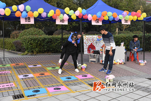 记者在现场看到,12个学院各出奇招,宣传心理健康知识的形式丰富多彩,趣味满满。“传递”游戏是由一名同学背筐背对搭档而立,搭档则要不断调整位置将手中的球投入筐中;“绝地求生”游戏是由一名同学蒙眼背着搭档,在搭档的指令中走出迷宫;“踩气球”游戏是两名同学绑着腿,然后齐心去踩爆气球……在游戏过程中,大家齐心协力,学会了信任,释放了压力,轻松、快乐地调节了心理情绪。此外,现场设置的主题展板“这个冬天你有我-恋爱与集体的关系”“做情绪的主人”等,将手写的文字与多彩的漫画结合起来,引起了大家的阅读兴趣,同学们纷纷驻足观看,学习如何以积极的心态、正确的方式面对学习、生活中的压力和挫折等问题。
