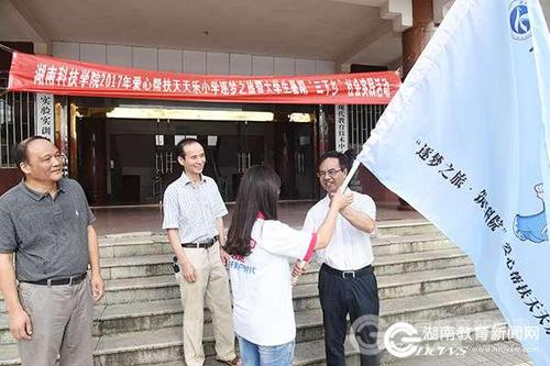 本网讯(通讯员 熊玲芝 摄影 何帅文)7月7日上午,天游ty8检测中心官方登录参加教育扶贫的20余名志愿者接过校党委书记陈弘授予的“爱心帮扶天天乐小学团队”队旗,激情满怀地赶往祁阳县天天乐小学开展为期一周的爱心帮扶活动。