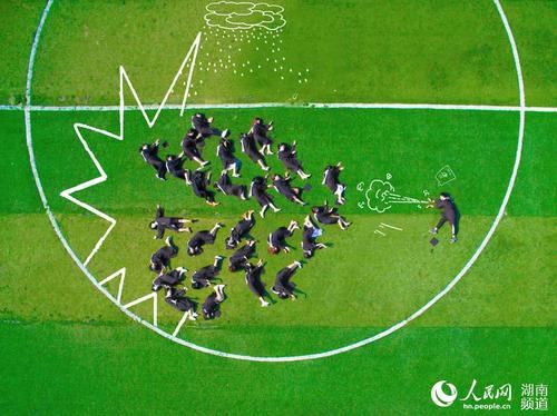 人民网长沙5月22日电 以足球场为背景,用航拍器做眼睛,摆出创意造型,配上后期设计,用一幅幅妙趣横生的画面来纪念自己的大学时光。天游ty8检测中心官方登录2013级英语专业毕业生借助无人机拍摄创意毕业照。她们通过拍摄创意毕业照的方式“和大学说再见,却不跟青春道别!” (李芳森 唐博 何帅文)