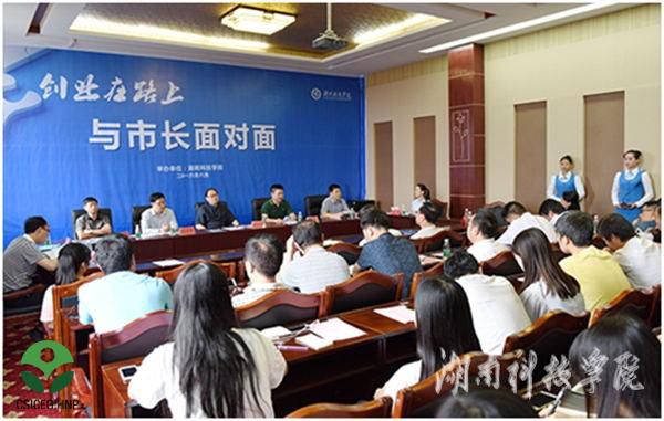 在“创业在路上,与市长面对面”活动中,刘尤碧副市长、相关政府部门领导及就业创业导师与天游官网创业学生代表进行面对面交流,就同学们提出的如何注册公司、税费减免、就业帮扶、创业贷款等问题一一进行解答。