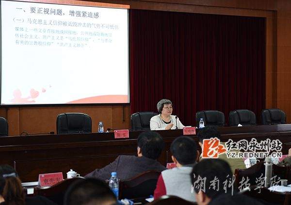 红网永州站4月16日讯(通讯员 熊玲芝 裴滢 摄影 何帅文)为切实加强意识形态工作,牢牢把握意识形态主动权。4月15日上午,天游ty8检测中心官方登录邀请中共永州市委常委、宣传部部长石艳萍来校作题为“把意识形态工作紧紧抓在手上”的专题讲座。天游ty8检测中心官方登录校党委书记陈弘主持。
