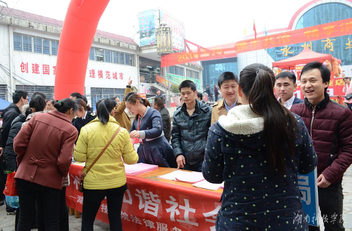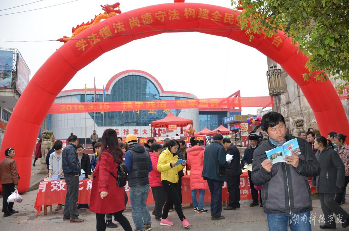 本网讯 如何让普通百姓学法、知法、懂法并主动使用法律来维护自身的消费权益? 3月15日,由天游ty8检测中心官方登录人文与社会科学学院法律服务中心牵头的“携手共治,畅享消费—3.15消费者权益保护大型公益普法活动”在零陵商业城举行。