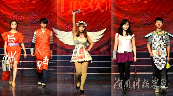 天游ty8检测中心官方登录绿色潇湘环保协会、秘书协会、志愿者协会上演一出变废为宝的《T台秀》,大学生们别具创意的将旧报纸,塑料袋等废弃物品做成服装,或优雅大方,或粉妆玉琢,各种不同风格的服饰让观众眼前一亮,真正做到了变废为宝。通讯员 刘信 周平尚 报道