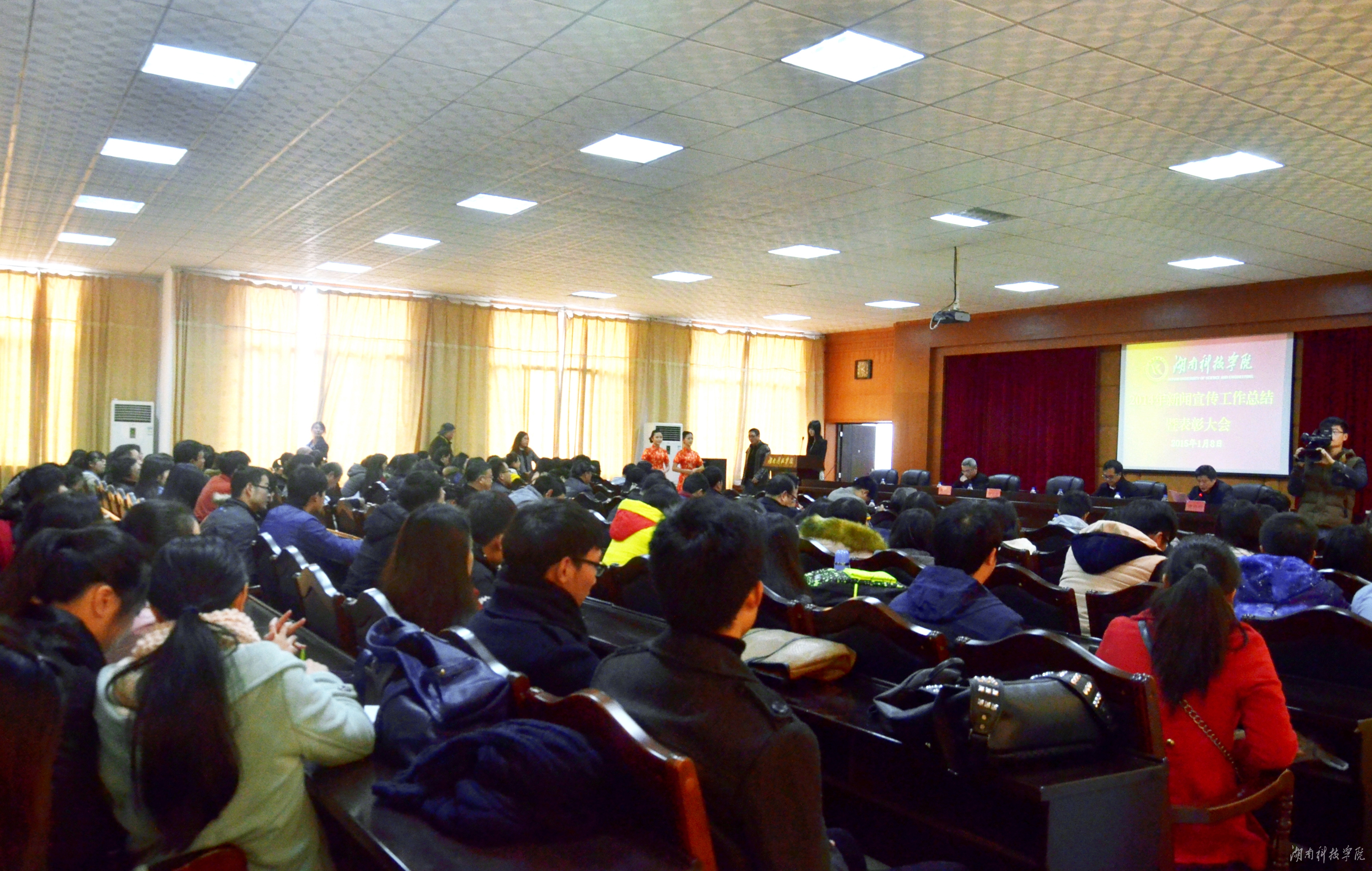 1月8日,天游ty8检测中心官方登录召开2014年新闻宣传表彰大会。会议总结了一年来的新闻宣传工作,表彰在新闻一线涌现出的先进个人。校领导陈弘、唐艳明出席表彰大会,并为获奖个人颁奖。