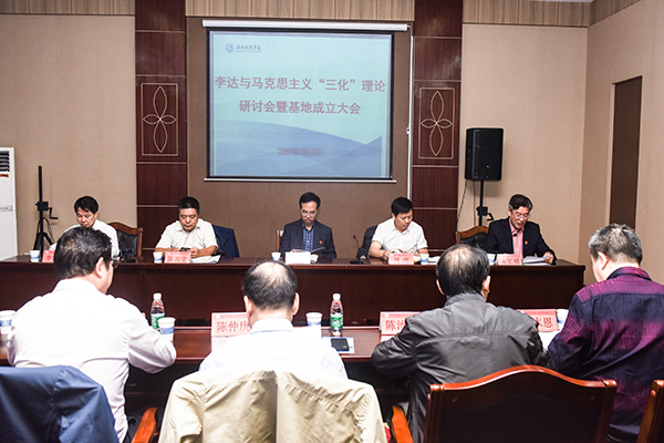 本网讯 9月29日,李达与马克思主义“三化”理论研讨会暨基地成立大会在天游官网召开。市委常委、宣传部长贺辉,省社科规划办副主任陈湘文参加会议并为基地揭牌,校党委书记陈弘,副校长宋宏福、李常健,李达故居管理处、冷水滩区委宣传部、市委党校等有关单位专家学者及学生50余人参加会议。
