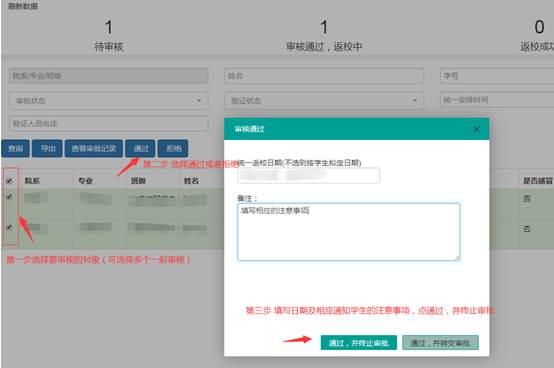 3、 学院领导及学工查看学生返校状况