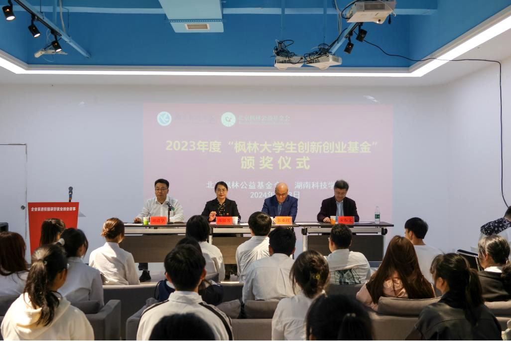 郑银芳对北京枫林公益基金会和张亚红校友长期以来关心学校发展、对师弟师妹们创新创业指导和帮助表示感谢,并诚挚邀请广大校友常回家看看,依托“校友回湘”的好形势、好政策、好环境,扎根湖湘大地,投身家乡建设事业。她希望获奖的同学们要培养敢闯的素质、会创的能力、合作的精神,不断提升创新创业能力,争做创新创业的先锋,争做积极进取的模范。